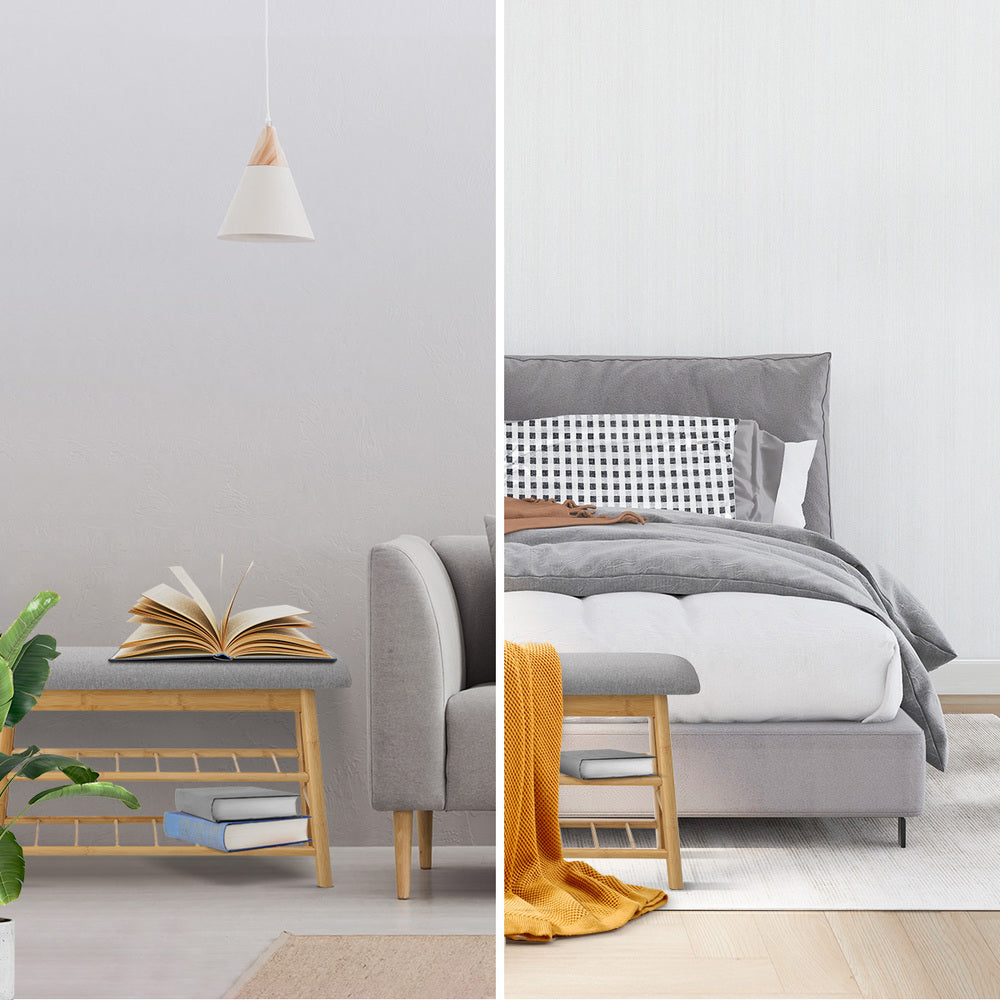 Keeping footwear neat and tidy and looking good too. The Oikiture Rattan Shoe Storage Bench will definitely add a touch of order and finesse to any hallway or entrance. The two-tier shoe rack is functionally adequate for a small number of footwear storage. But what?s great about this product is its 3-in1 function. As a bench, the richly padded sponge seat with a fabric upholstery makes for comfortable sitting to put on your footwear with minimum hassles. No need for any awkward balancing act. Lift up the bench and a vast hinged hidden storage is found just under the seat to store footwear paraphernalia or other assorted accessories. Everything is close at hand (or at feet). The bamboo construction also ensures that the shoe storage bench is strong and durable with a maximum weight capacity of up to 100kg. Safe for most people to use it without any worries. The finishing is smooth with fine attention to details that is backed by meticulous workmanship. Better still, do not confine this shoe storage bench to just the front entrance as it will work equally as satisfying in any home space where shoe storage is required. Not least, very little maintenance is needed with this shoe storage bench and just a simple wipe with a damp cloth is all that is needed to preserve its pristine condition. Assembly is a breeze too with the easy-to-follow instructions to get it up and standing in no time at all.