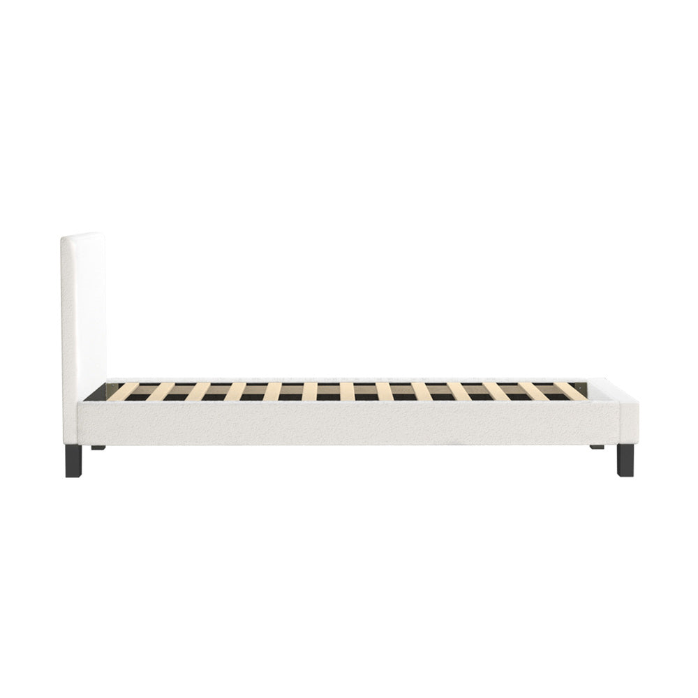 Create a calming bedroom with our Boucle Fabric series bed frame. Fitted with solid legs and wooden slats that designed with Velcro to hold it on the platform bed in place, this bed brings you the extra security that you need to get a good sleep throughout the night.