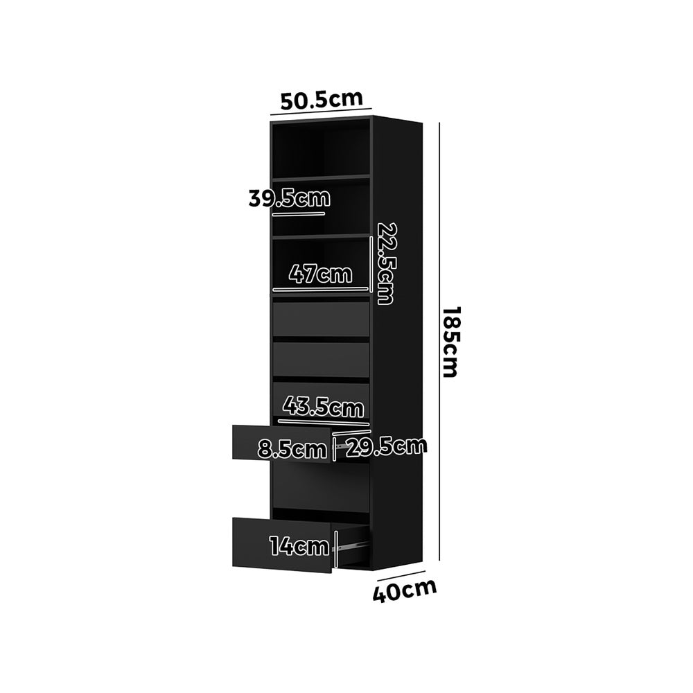 Oikiture Wardrobe Shelf Unit 3 Shelves 6 Drawers Black