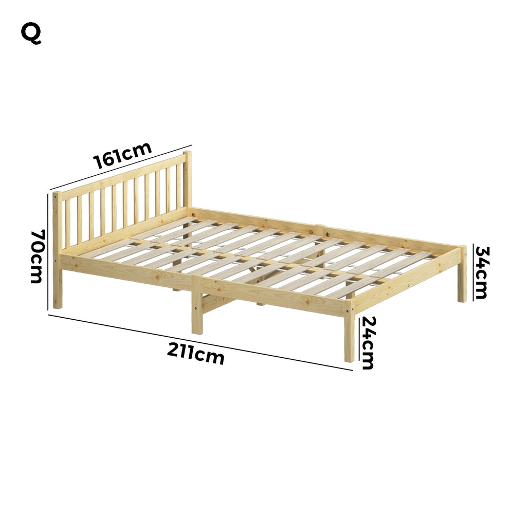 Oikiture Wooden Bed Frame Queen Size Slat Support