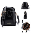Oil Wax Leather Double Zip Crossbody Phone Bag - Black