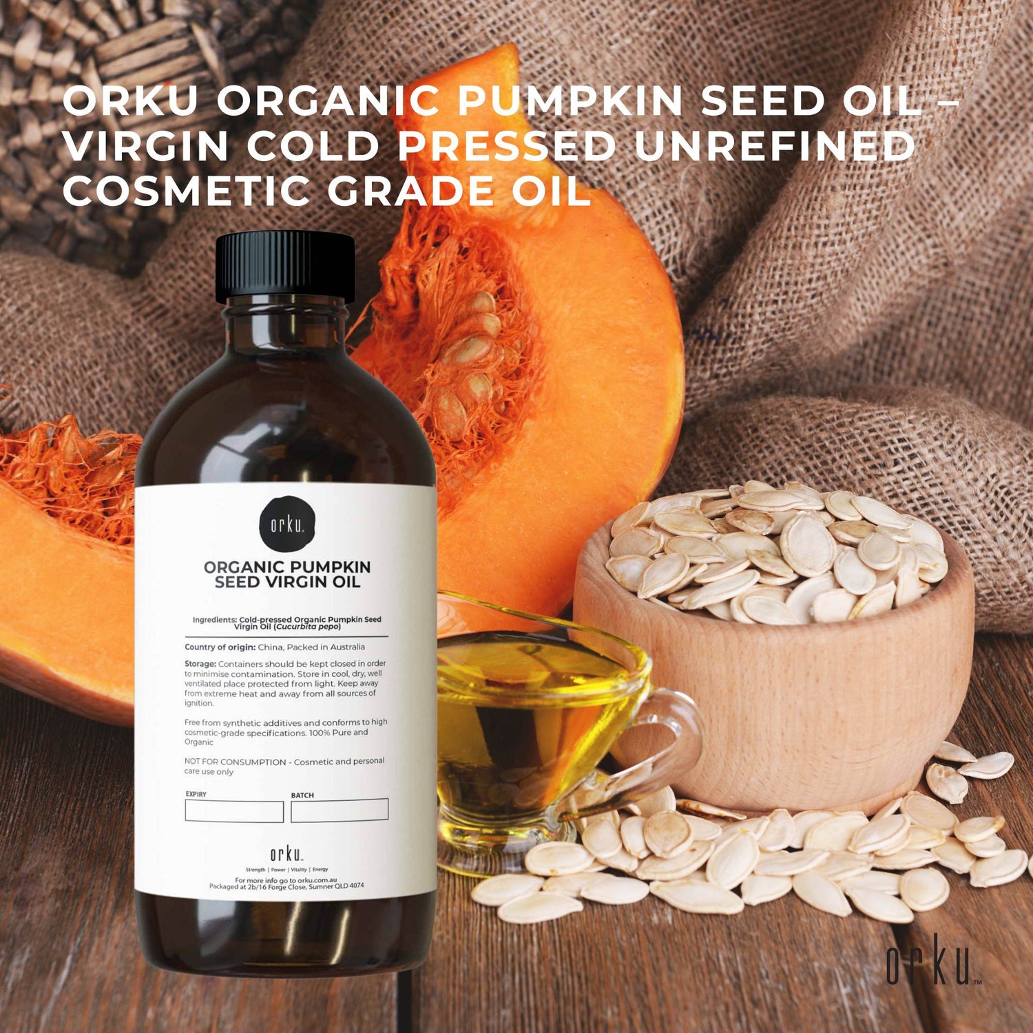 Orku Organic Pumpkin Seed Virgin Oil is a cold-pressed, 100% pure oil derived from the seeds of Cucurbita pepo. Known for its rich composition of essential fatty acids and mild, natural aroma, this oil is ideal for use in cosmetic and personal care formulations.