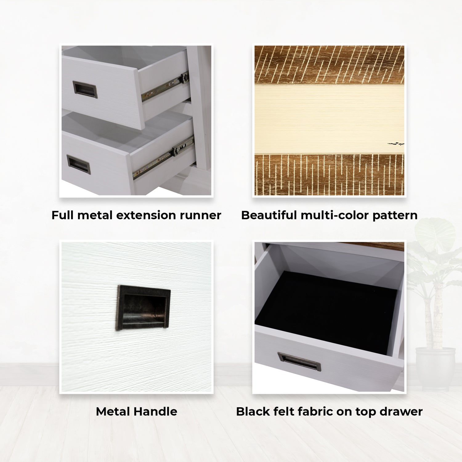 - Thoughtfully designed with 2 spacious doors and 3 smooth-gliding drawers for versatile storage solutions