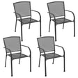 This stylish set of 4 mesh chairs add a touch of contemporary style to your patio, garden or dining room. When you invite guests over, they will certainly marvel at these modern chairs. The chairs are made of sturdy steel with an e-coating and powder coating. The chairs are extra strong, durable and weather-resistant. They are also easy to clean and maintain thanks to the finish. The mesh design gives the chairs an elegant look. When not in use, you can stack the chairs for easy storage.
