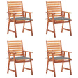 This contemporary wooden dining chair set with cushions will add a touch of natural style to your garden, terrace or patio. This wooden chair set will be a great choice for al fresco dining. These garden chairs are made of solid acacia wood, a tropical hardwood, which is weather-resistant and durable for years of use. The oil finished surface is easy to clean with a damp cloth. The slatted design will bring a rustic charm. What's more, the included cushions provide extra comfort while seating. It is made of 100% polyester that has been treated to make it waterproof. Each cushion has two sets of ropes to fix it on the chair tightly. Note: In order to extend the life of your outdoor furniture, we recommend you to clean it regularly and do not leave it outdoors without protection unnecessarily.Clean: Use a mild soap solutionStoring: If possible, store in a cool, dry place indoors. If the product is stored outdoors, protect it with a waterproof cover. Wipe and dry the excess water or snow from flat surfaces after a rain or snowfall. Allow sufficient air circulation to avoid moisture-related damage.