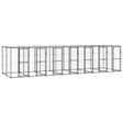 This versatile dog kennel features multiple uses: playing, exercising, training, or simply keeping your dog safe. It will be the perfect play paradise for your furry friends! This dog kennel provides ample exercise space. The mesh all around helps prevent mischief and unexpected accidents while enabling ventilation. Thanks to the sturdy powder-coated steel construction, this dog kennel is durable and built to last. Made of PE, the included top canopy is water-resistant and UV-resistant. The hinged door with a lockable latch system ensures extra security and safety for your dogs. Good to know:To prevent damage from heavy snow buildup, we recommend clearing the roof regularly during winter.