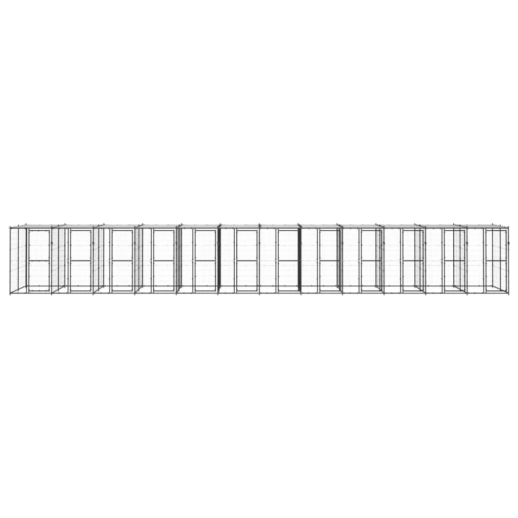 This versatile dog kennel features multiple uses: playing, exercising, training, or simply keeping your dog safe. It will be the perfect play paradise for your furry friends! This dog kennel provides ample exercise space. The mesh all around helps prevent mischief and unexpected accidents while enabling ventilation. Thanks to the sturdy powder-coated steel construction, this dog kennel is durable and built to last. Made of PE, the included top canopy is water-resistant and UV-resistant. The hinged door with a lockable latch system ensures extra security and safety for your dogs. Good to know:To prevent damage from heavy snow buildup, we recommend clearing the roof regularly during winter.