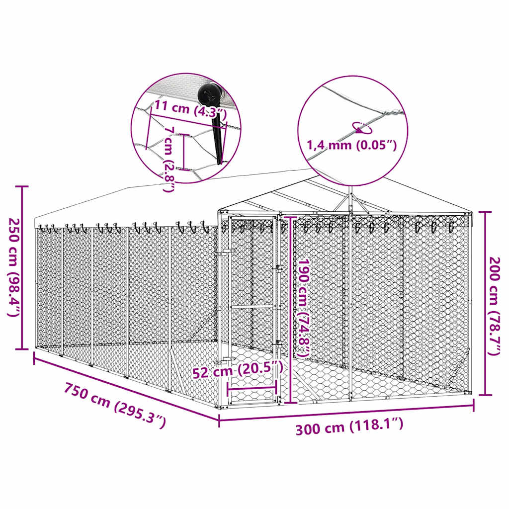 This practical and spacious outdoor dog kennel with roof is a perfect choice as an outdoor enclosure for keeping your animals safe and comfortable. Versatile kennel: The dog kennel features a spacious space that allows your dogs, chickens, rabbits, ducks, and other small animals to play, exercise, train, or just rest.Sturdy construction: Made of heavy-duty galvanised steel, the dog cage is sturdy and durable.Lockable door: The outside dog kennel has a lockable door to prevent your small animals from predators and other hazards while outdoors.Protective roof: Made of polyethylene, the roof is water-resistant and UV-resistant, providing protection from sun, rain, snow, as well as other weather conditions.Mesh design: The mesh design of the dog run kennel ensures a dry and ventilative living condition.