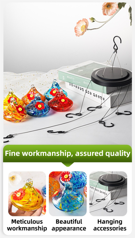 - Superior Visibility for Birds: The bright, multi-colored glass mimics the natural flowers that hummingbirds love, attracting them from a distance to your patio or balcony.