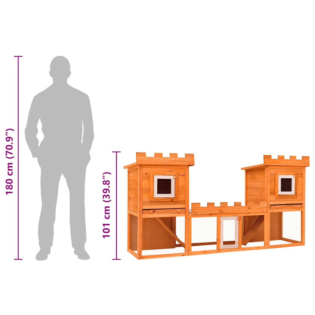 This quality hutch of 2 layers provides a large cozy place for keeping small animals, especially the cute rabbits. It features multiple uses: playing, exercising, training, or simply keeping your pets safe. This rabbit hutch provides your pets with plenty of exercise space while the tight iron wire mesh helps prevent unexpected accidents. Meanwhile, the construction of iron wire grid ensures you to monitor the pets. The rabbit hutch is built with high-quality pine wood frame, which ensures a long-term use. Its cozy cubby makes the perfect sleeping area for your pets. Two easy-climb ladders lead to the upper floor. Important note: We recommend you placing the rabbit cage under shelter. Accordingly, it will last a longer life.