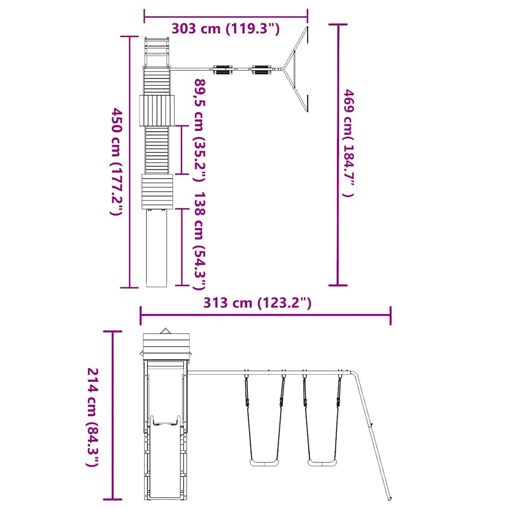 Do you want to give your children the freedom to play at home? This wooden outdoor playset transforms your backyard into a playground for imaginative adventures! Durable material: This climbing frame with slide is made of solid douglas wood. Solid douglas wood is a highly durable wood that works well for outdoors. Douglas wood is also strong enough to work with minimum care, even under the influence of the weather. Sturdy and stable frame: The wooden frame of the garden climbing frame ensures sturdiness and stability. In addition, the "A" shaped legs of the children's swing allow for balance.Multi-activity centres: The climbing frame features a 90 cm height platform and stands out with its wave slide, a double swing set, a ladder as well as sandpits. Your little ones can also invite their friends to join the fun. Thoughtful design: The surrounding wooden railings are designed to ensure the safety of children during their happy play. Also, the wooden roof provides shade for your children on hot summer days. Endless fun: This fun-filled wooden outdoor playhouse is the perfect way for your children and their friends to enjoy entertainment, have more interactive time and make memories for you and your children! Warning:Only for domestic useOutdoor use Not suitable for children under 3 years Recommend user age: 3-8 years old Good to know:To make assembly as easy as possible, each product is delivered with a manual.