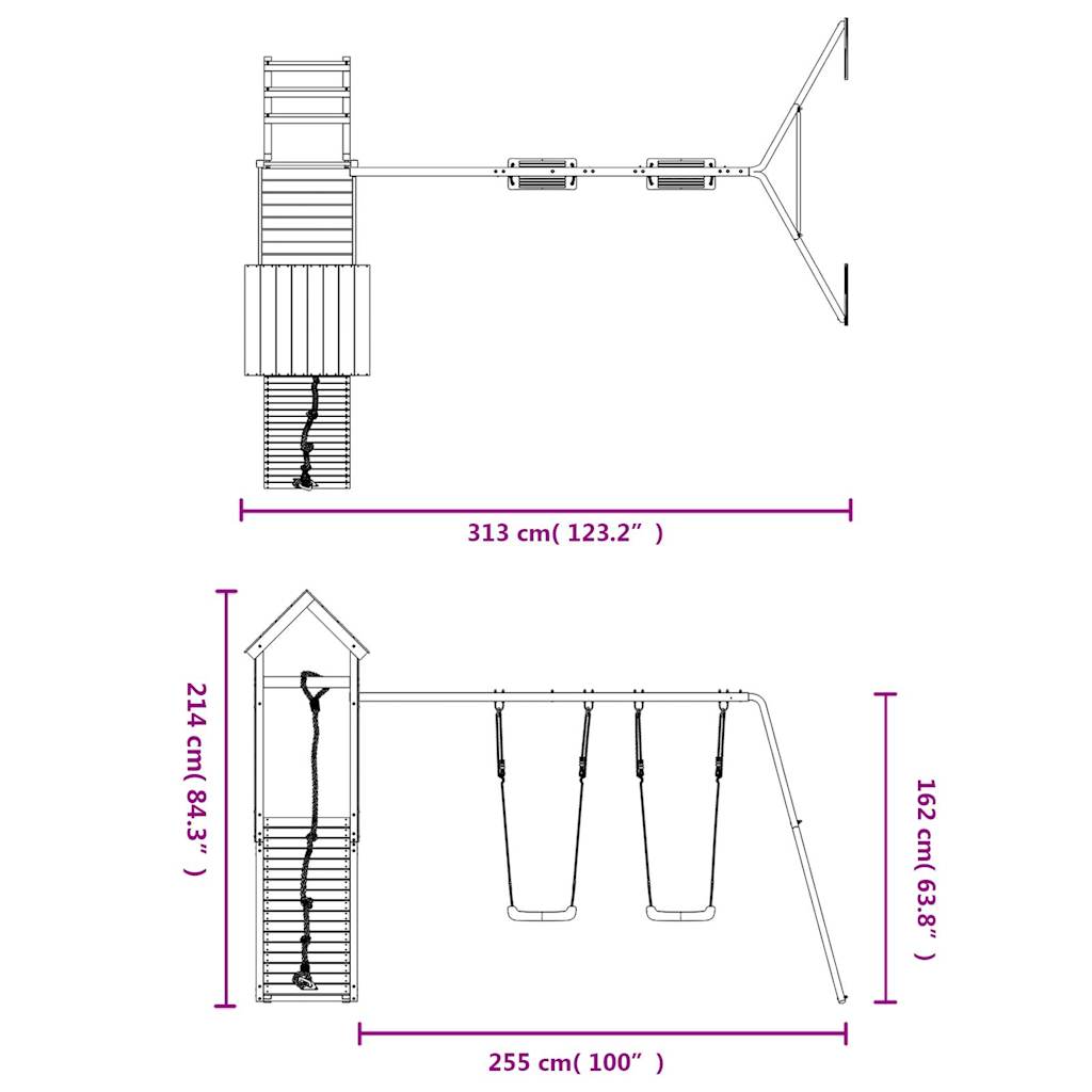 Do you want to give your children the freedom to play at home? This wooden outdoor playset transforms your backyard into a playground for imaginative adventures! Durable material: This climbing frame with slide is made of solid pine wood. Solid pine wood is a beautiful natural material. Pine wood has a straight grain, and the knots give the material its signature, rustic look. Sturdy and stable frame: The wooden frame of the garden climbing frame ensures sturdiness and stability. In addition, the "A" shaped legs of the children's swing allow for balance.Multi-activity centres: The climbing frame features a 90 cm height platform and stands out with its climbing wall with a rope, a double swing set, a ladder as well as a sandpit. Your little ones can also invite their friends to join the fun. Thoughtful design: The surrounding wooden railings are designed to ensure the safety of children during their happy play. Also, the wooden roof provides shade for your children on hot summer days. Endless fun: This fun-filled wooden outdoor playhouse is the perfect way for your children and their friends to enjoy entertainment, have more interactive time and make memories for you and your children! Warning:Only for domestic useOutdoor use Not suitable for children under 3 years Recommend user age: 3-8 years old Maximum per user weight: 45 kg Good to know:To make assembly as easy as possible, each product is delivered with a manual.