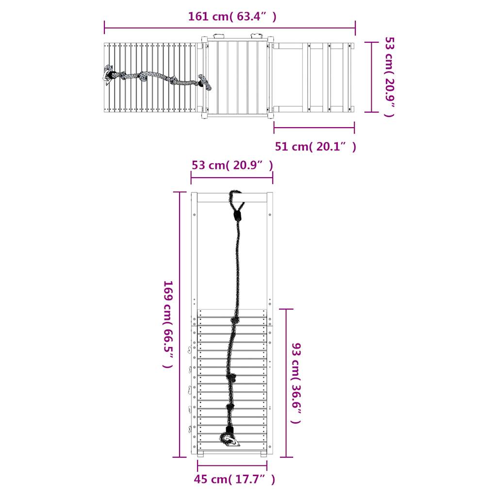 - Climbing wall dimensions: 45 x 5 x 108 cm (L x W x H)