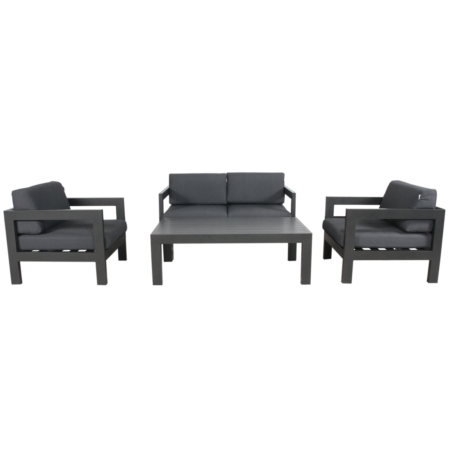 This smart combination of a 2+1+1 seater sofas and coffee table set makes dining in outdoor areas trouble-free. Suitable for medium- to large-sized outdoor areas, the set, designed in contemporary coastal style, showcases amazing craftsmanship. The sofas ensure complete relaxation when you sit or stretch on them. They offer wide and deep seating for superior lounge comfort. Weatherproof, water-repellent, and UV-protected cushions make them ideal for outdoor dining areas. The accompanying coffee table is equally beautiful. The aesthetically crafted coffee table has an aluminium slat tabletop that looks nice in an outdoor setting. The structural frame of the outdoor set is made of durable, powder-coated, non-rusting aluminium and 100% polyester fabric upholstery. The charcoal frame with dark grey fabric looks beautiful in the outdoor setting. The set is durable as well. The frame comes with a two-year warranty, while the fabric and foam come with a one-year warranty.