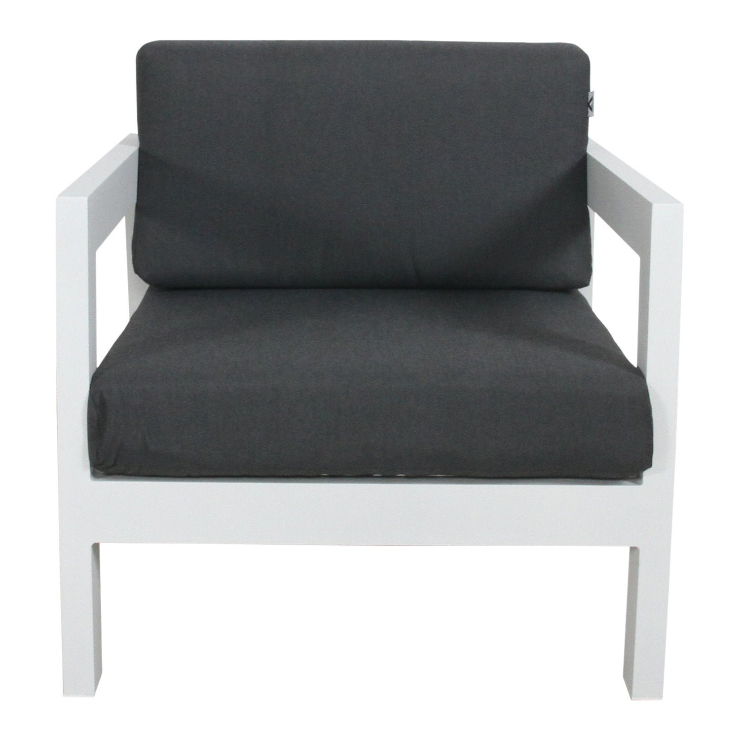 This smart combination of 3+1+1 seater sofas and a coffee table set makes dining in outdoor areas trouble-free. Suitable for medium- to large-sized outdoor areas, the set, designed in contemporary coastal style, showcases amazing craftsmanship. The sofas ensure complete relaxation when you sit or stretch on them. They offer wide and deep seating for superior lounge comfort. Weatherproof, water-repellent, and UV-protected cushions make them ideal for outdoor dining areas. The accompanying coffee table is equally beautiful. The aesthetically crafted coffee table has an aluminium slat tabletop that looks nice in an outdoor setting. The structural frame of the outdoor set is made of durable, powder-coated, non-rusting aluminium and 100% polyester fabric upholstery. The white frame with dark grey fabric looks beautiful in the outdoor setting. The set is durable as well. The frame comes with a two-year warranty, while the fabric and foam come with a one-year warranty.