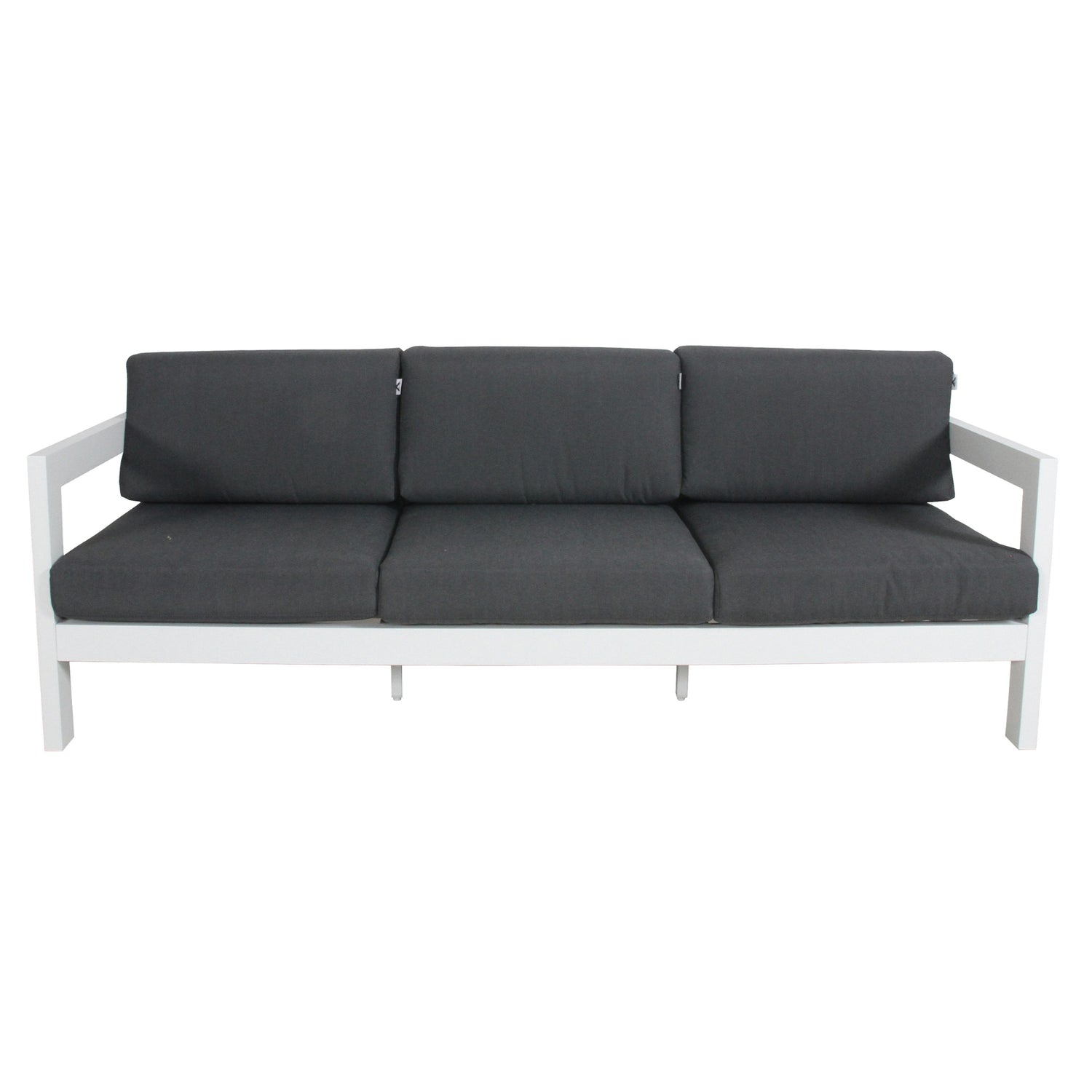 This smart combination of 3+2+1-seater sofas and a coffee table set makes dining in outdoor areas trouble-free. Suitable for medium- to large-sized outdoor areas, the set, designed in contemporary coastal style, showcases amazing craftsmanship. The sofas ensure complete relaxation when you sit or stretch on them. They offer wide and deep seating for superior lounge comfort. Weatherproof, water-repellent, and UV-protected cushions make them ideal for outdoor dining areas. The accompanying coffee table is equally beautiful. The aesthetically crafted coffee table has an aluminium slat tabletop that looks nice in an outdoor setting. The structural frame of the outdoor set is made of durable, powder-coated, non-rusting aluminium and 100% polyester fabric upholstery. The white frame with dark grey fabric looks beautiful in the outdoor setting. The set is durable as well. The frame comes with a two-year warranty, while the fabric and foam come with a one-year warranty.