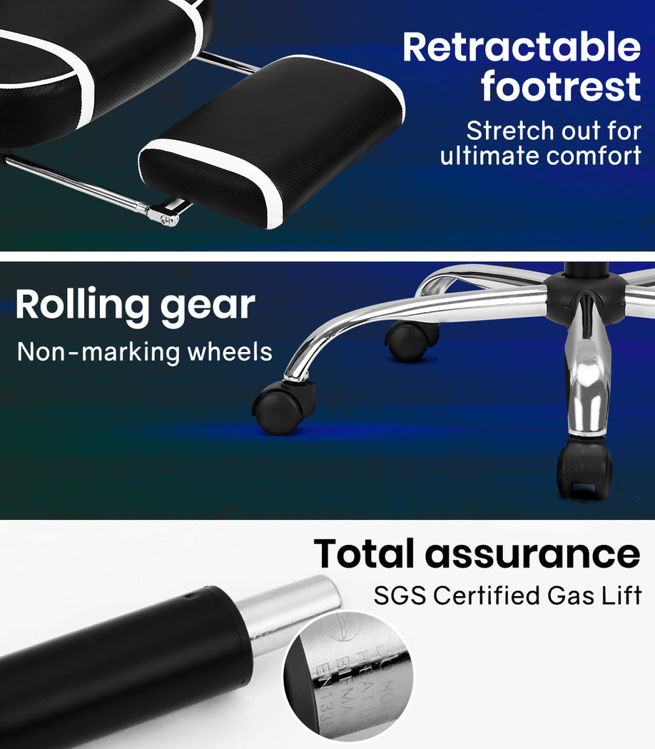 The Elite series has a retractable footrest and up to 135° recline which is ideal for binge watching your favourite series, catching a movie or stretching out between levels. It also has a sturdy base with non-marking nylon castor wheels to ensure easy movement. Backed by an extensive 3 year warranty, you can be assured it has been built to standards that simply blast away the competition.