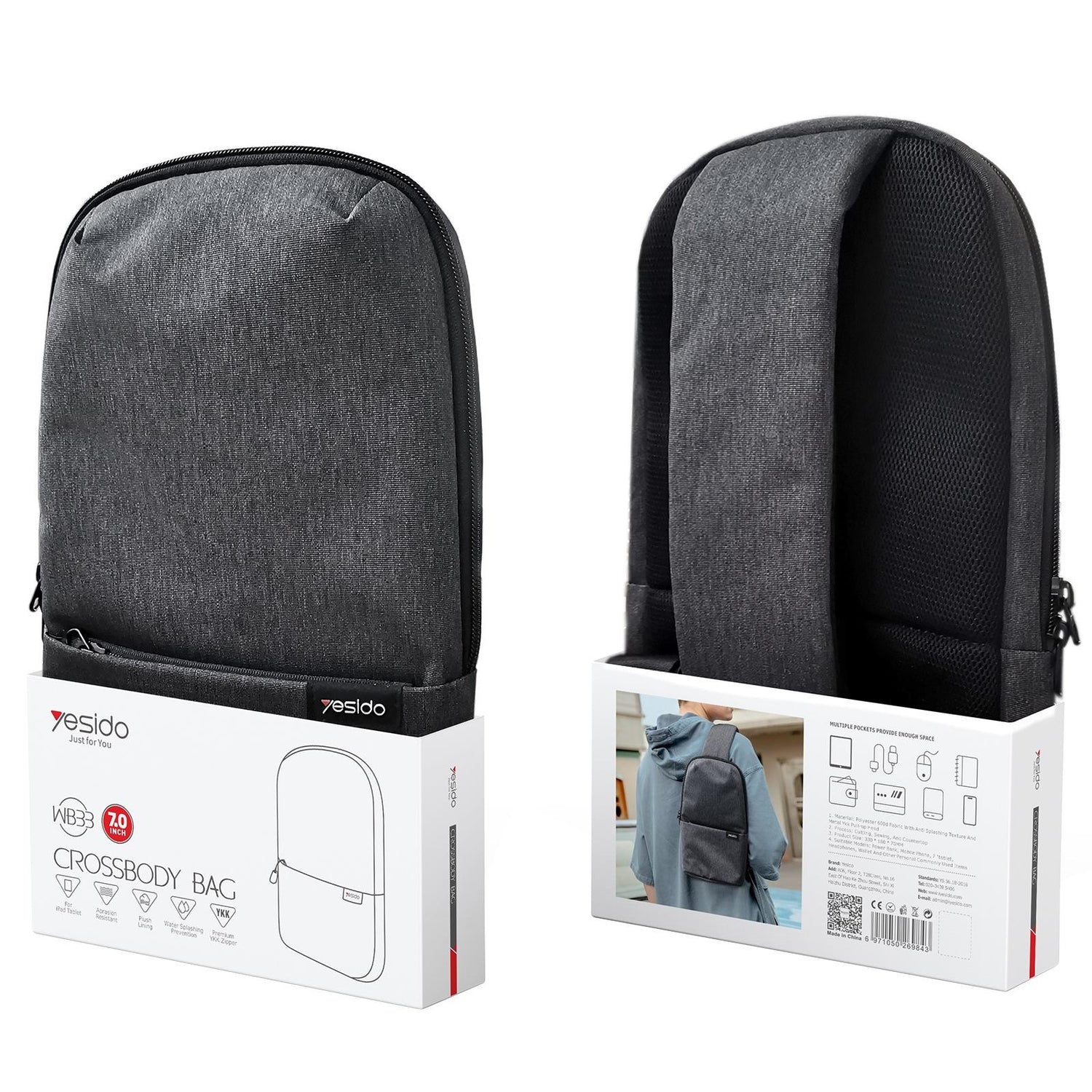• Material: Polyester 600D+Ykk Metal Slider