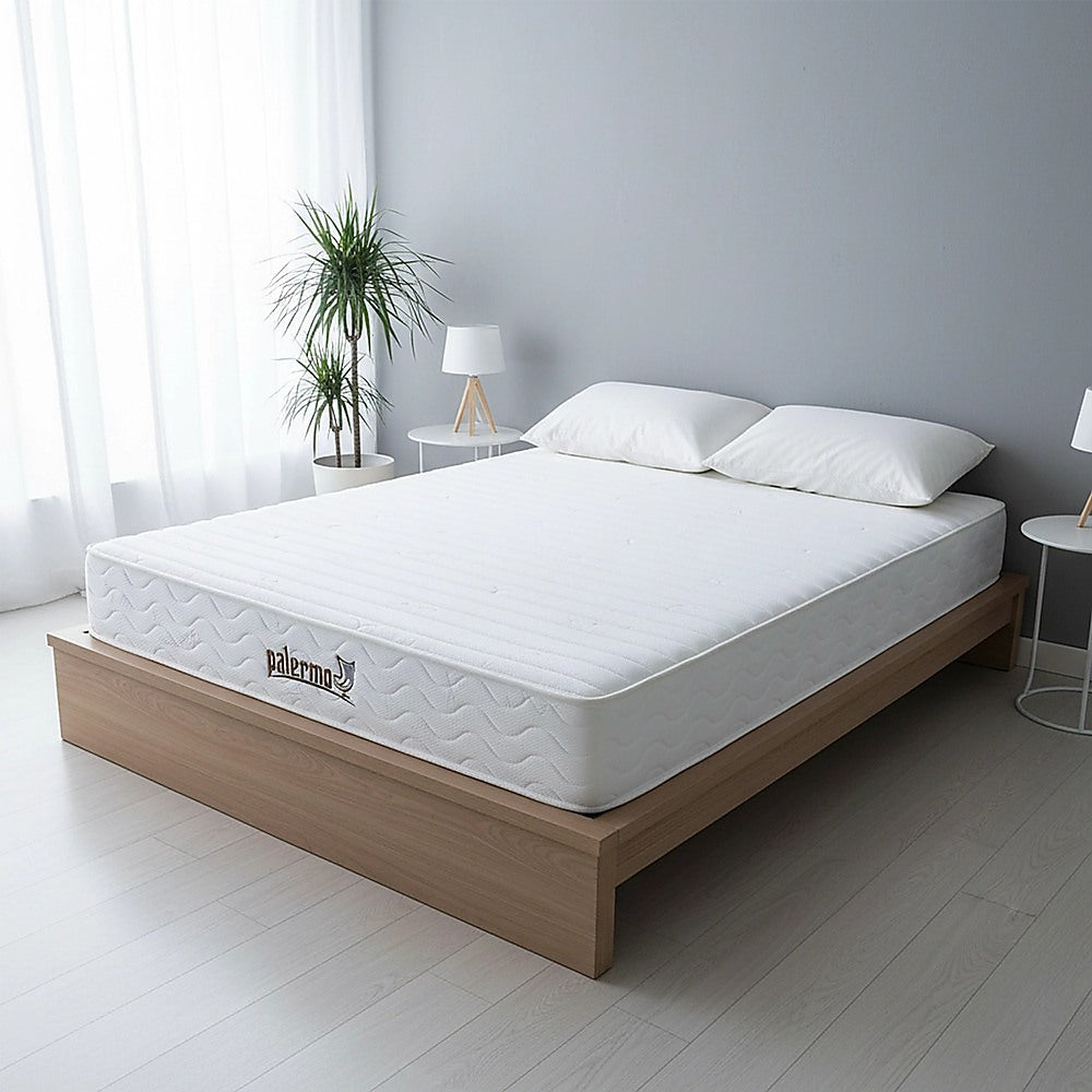 Sleep in comfort with the Palermo King Contour 20cm Mattress, designed with CertiPUR-US certified foam and 7.5 (19cm) 14-gauge pocket springs for lasting support. The individually encased coils contour to your body for even weight distribution and pressure relief, while the quilted foam layers on top and bottom provide a soft, cushioned feel that reduces coil sensation.