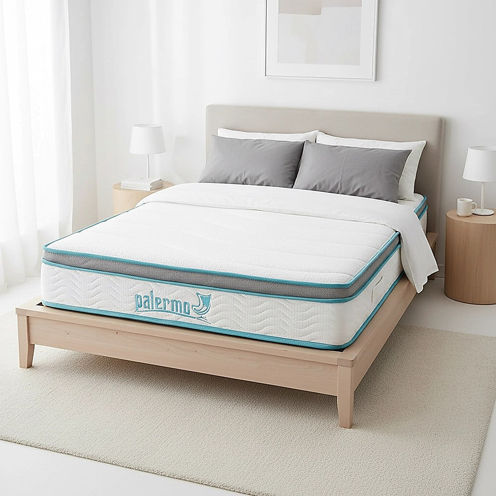 Welcome to the revolutionary comfort of the Palermo hybrid mattress. We quilted memory foam atop a layer of comfort foam, creating a sleep surface that conforms to your unique body shape and relieves pressure points. Then, we place this onto a set of traditional steel spring coils that provides the firmness that many need.