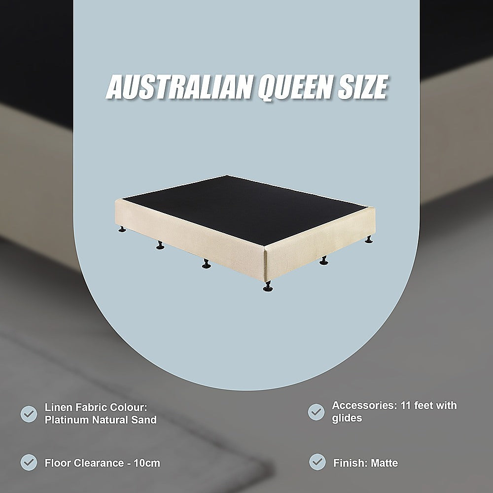 - Materials: Solid pine timber, high-density foam, and premium linen fabric upholstered bed base