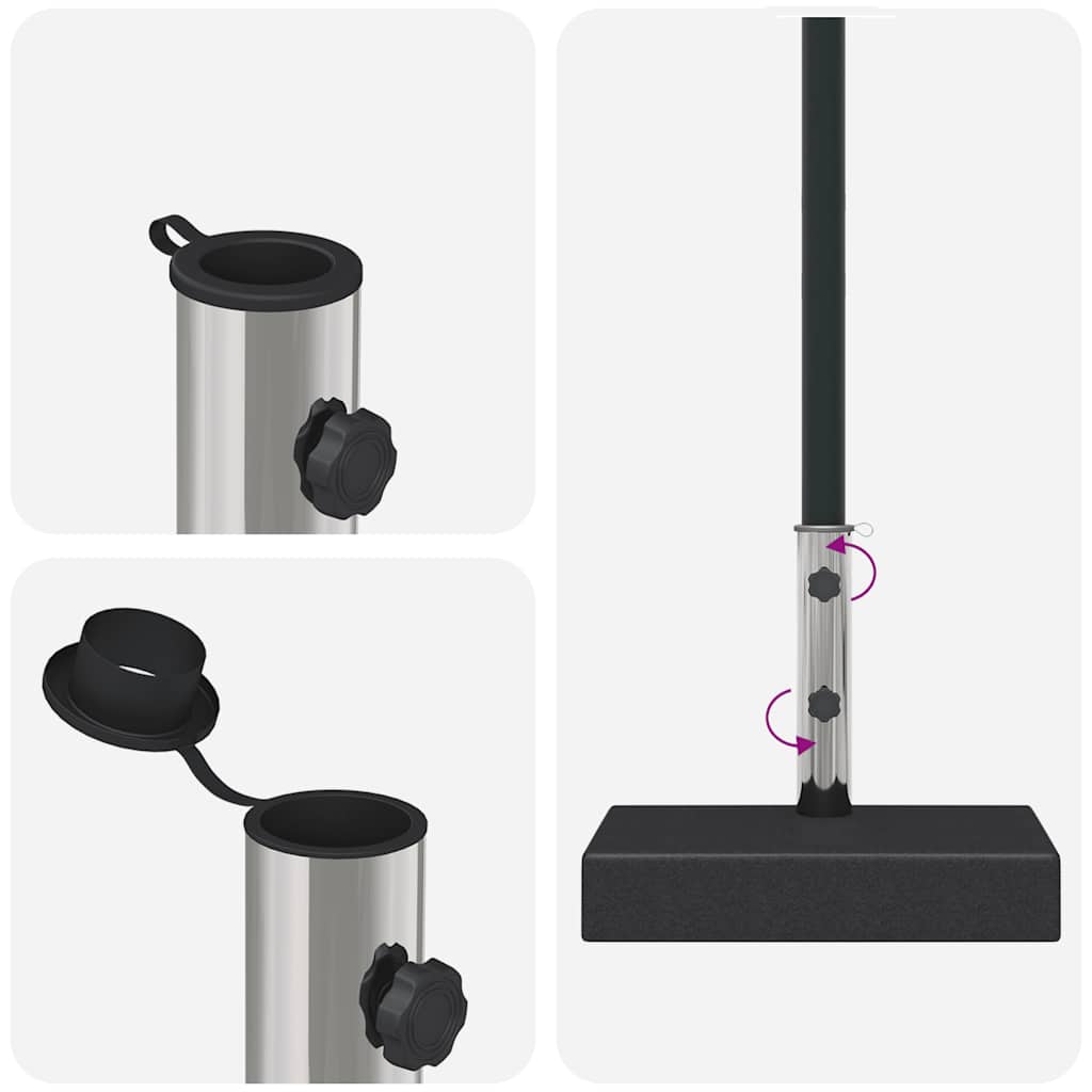 Our solid granite parasol base provides a firm and sturdy base for holding your umbrella and keeping it from tipping over or being blown away. Made of strong granite and with a weight of 25 kg, this umbrella weight plate is extremely stable and ensures your parasol stand still even in windy weather. The umbrella holder has 2 locking bolts to keep the umbrella pole in place. One adapter is included, making the parasol base holder suitable for parasol poles with diameters of 38/48 mm.