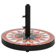 This parasol base is uniquely stylish and functional. It safely secures your patio umbrella while serving as a beautiful accent to your outdoor seating area. Sturdy material: Iron is a strong and hard material. It's a solid favourite in industrial and furniture construction. The powder coating on iron creates a protective layer against wear and tear.Practical surface: The surface of the umbrella stand is made of ceramic tile. It is easy to clean and maintain while adding extra weight.Adjustable knobs: The umbrella base is easily adjustable with two side knobs to secure your umbrella.Unique pattern: The ceramic tile pattern of the parasol weight adds a classic and stylish style to your outdoor living place. Good to know: To make assembly as easy as possible, each product is delivered with a manual. Note: This product is not suitable to be left outside in cold condition.