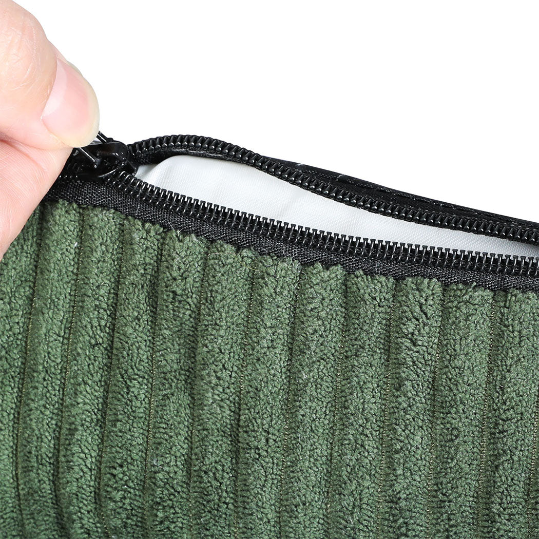 Material: Corduroy fabric, waterproof inner lining, PP cotton bolsters, egg crate foam sofa base