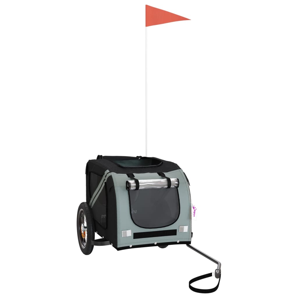 This handy pet bike trailer is a great addition to your pet's day out, allowing your pet to enjoy a more comfortable journey. Durable frame: Iron is a strong and hard material. It's a solid favourite in industrial and furniture construction. With a frame made of iron, the bicycle trailer is sturdy and reliable, giving you peace of mind when riding on the road.Comfortable bike trailer: This bike cargo trailer is made from oxford fabric and features the PVC cover to keep your pet out of the drizzle. In addition, there is a black load-bearing board at the bottom for comfortable space.Convenient design: Zippered front and back doors make it easy to get in and out, and the mesh windows and a zipped roof allow air to circulate inside and keep your pet cool during the journey.Safe riding: The bicycle cargo trailer has two large wheels that allow for smooth and safe travel on various grounds and the reflectors on the outside provide visibility in the dark, plus the flag can increase traffic safety.Wide applications: Perfect for carrying small dogs and pets, this pet bike trailer can be attached to your bike easily. It can also be used to carry groceries, camping equipment, sporting goods, or whatever you need to take with you!
