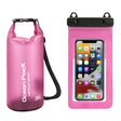 Pink 20L PVC Waterproof Swimming Bag Bonus with Waterproof Phone Pouch - Roll-Top Floating Dry Gear Bags for Beach, Kayaking & Outdoor Sports