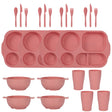 Pink Durable Eco-Friendly Wheat Straw Dinnerware Set - 24 Pieces with Plates, Bowls, Cups & Cutlery