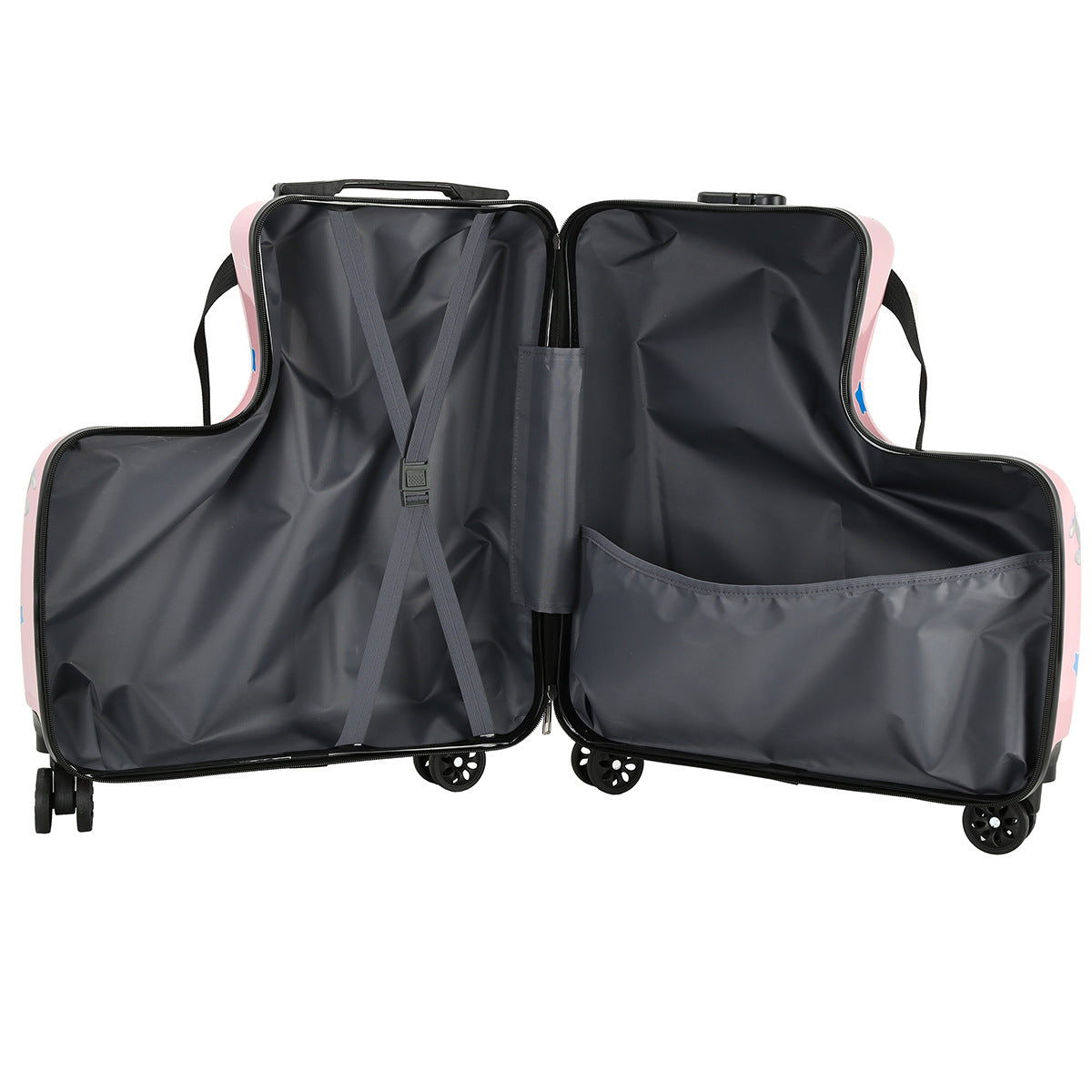 Pink Kids Ride-On Luggage - 20-Inch Cartoon Travel Suitcase with Footrest, Durable Rolling Carry-On for Children