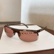 Pink Lenses With Brown Edges Trendy Curved Sunglasses - Cat Eye Design UV Protection Stylish Glare-Blocking Shades