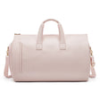 Pink PU Leather Travel Duffel Bag - Large Capacity Waterproof Suit Bag with Shoe Compartment
