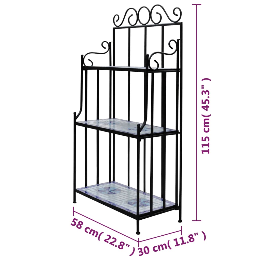 This plant stand features elegantly-curved iron frame and 3 mosaic-patterned ceramic layers. It will surely become an eye-catcher in your garden, balcony, terrace, etc. The 3-layer plant rack has a height of 115 cm, and could be perfectly placed against any wall. Its iron frame contributes to the sturdiness, while the ceramic top is also easy to clean. It is very durable for a long-term service life. Please note this product is not suitable to be left outside in cold condition.
