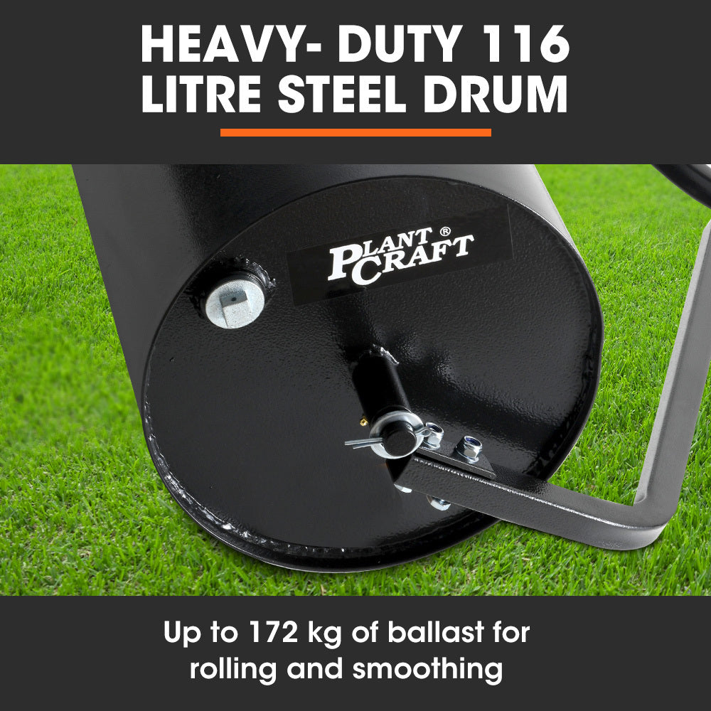 PLANTCRAFT 48" 116L Tow Behind Lawn Roller, Water or Sand Filled, for grass sod, seed, and unlevel ground