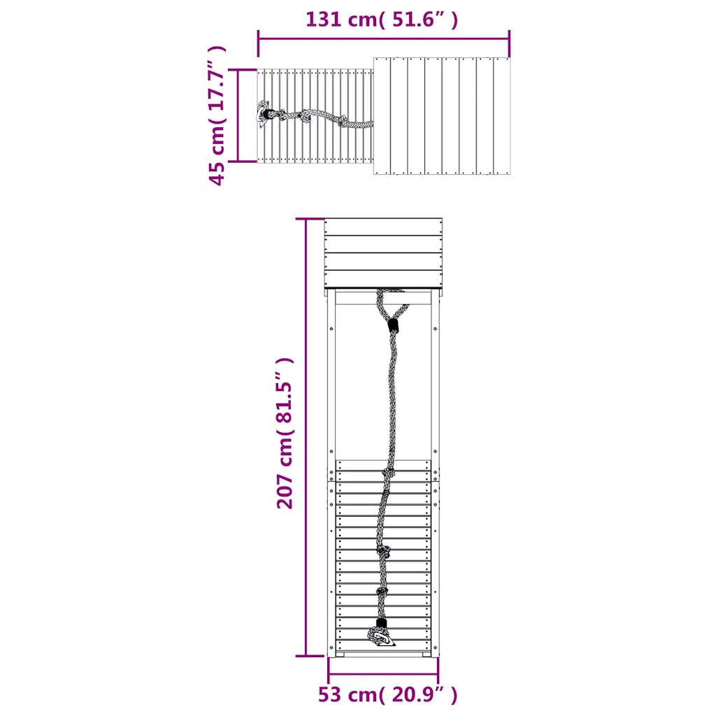 - Climbing wall dimensions: 45 x 5 x 108 cm (L x W x H)