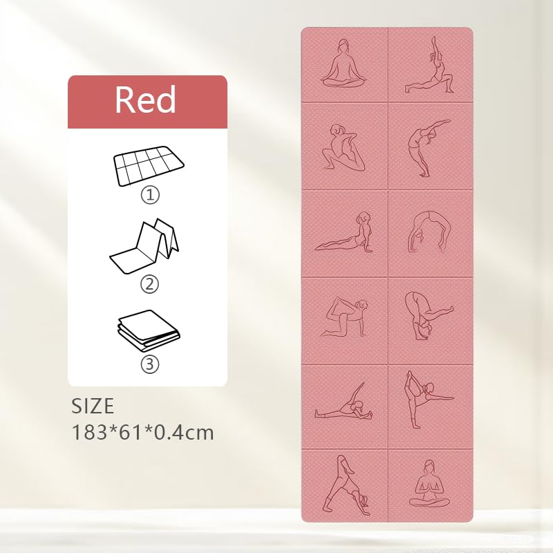Designed for comfort, convenience, and versatility, this 6-fold portable yoga mat is the perfect companion for yoga, pilates, meditation, fitness routines, or even as a soft sleeping pad for kids naps at school or home. Made from high-quality eco-friendly TPE material, it offers excellent cushioning and support with a lightweight design thats easy to carry anywhere. The mat features a dual-sided non-slip texturewave grip on one side for enhanced traction on floors, and subtle patterned surface on the other for secure footing during dynamic movements. Its ideal for use on any surface, including wood, tile, or marble, thanks to its superior anti-slip performance. With dimensions of 183cm x 61cm x 0.4cm when flat, it provides ample space for full-body workouts while folding down compactly to just 30cm x 30cm x 6cmperfect for storage in bags, backpacks, or under beds. The waterproof and sweatproof surface repels moisture, dries quickly, and wipes clean effortlessly with a damp cloth. Its soft, odor-free feel ensures long-term comfort without irritation. Whether you're practicing at home, traveling, camping, or helping your child take a peaceful nap, this multi-purpose mat delivers reliable performance and stylish simplicity.