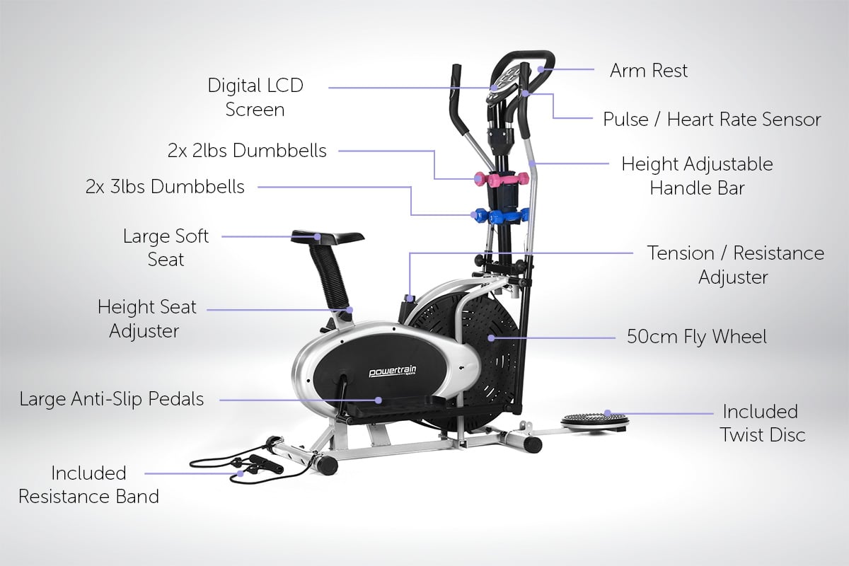 Don't put off getting in shape any longer, take the first step with the PowerTrain multi-function elliptical bike today!