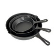 This top-quality cast iron set will become a treasured heirloom, passed down from one generation to the next. Cast iron is as sturdy as you can get – almost unbreakable. Just season it again after you use it a few times – at least several times a year. Rub it all over with oil after each use, and it will give you and your heirs years of use. Cast iron's high heat retention and even cooking capabilities, even at high heat, will make this set of pans your daily go-to for fried chicken, pan-seared steaks, cornbread, one-pan dinners, pancakes, and more. Saute, fry, grill, or even bake whether on your barbeque grill, in your oven, or on top of your stove. Their rugged construction makes them perfect to take along on camping trips, too. Start your own family tradition of great cooking today. Buy your set now!
