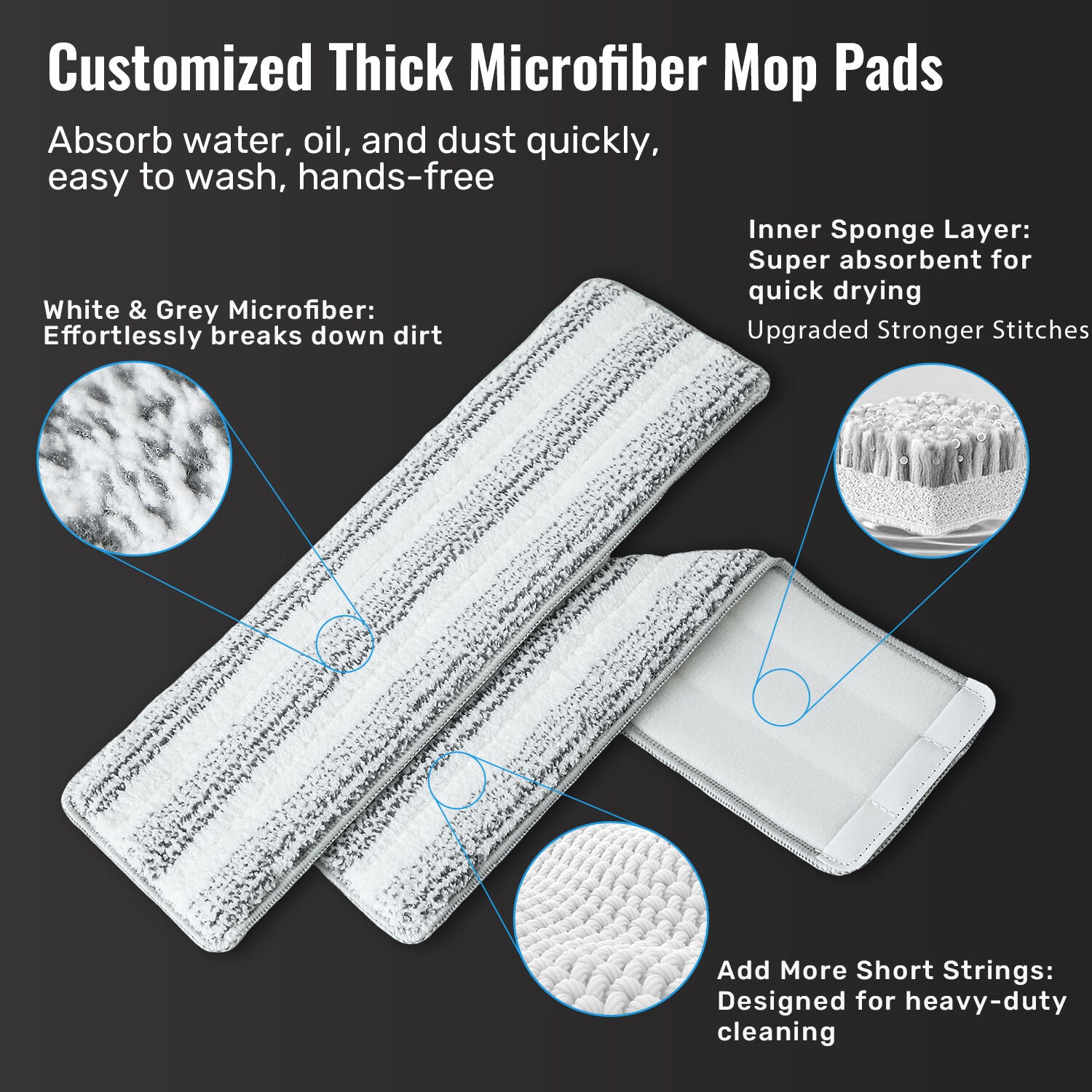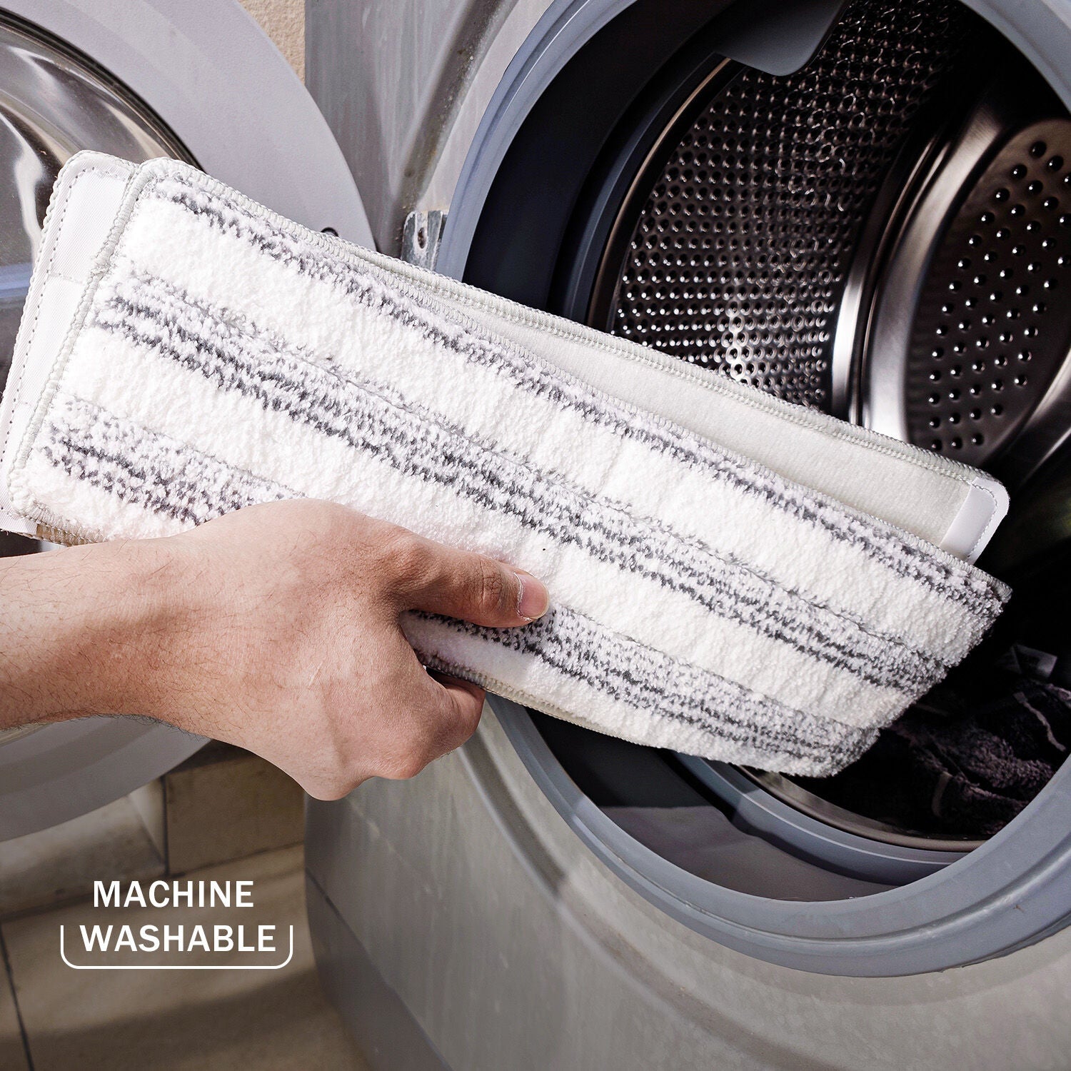 - Included mop pads: 4x reusable, machine-washable microfibre pads