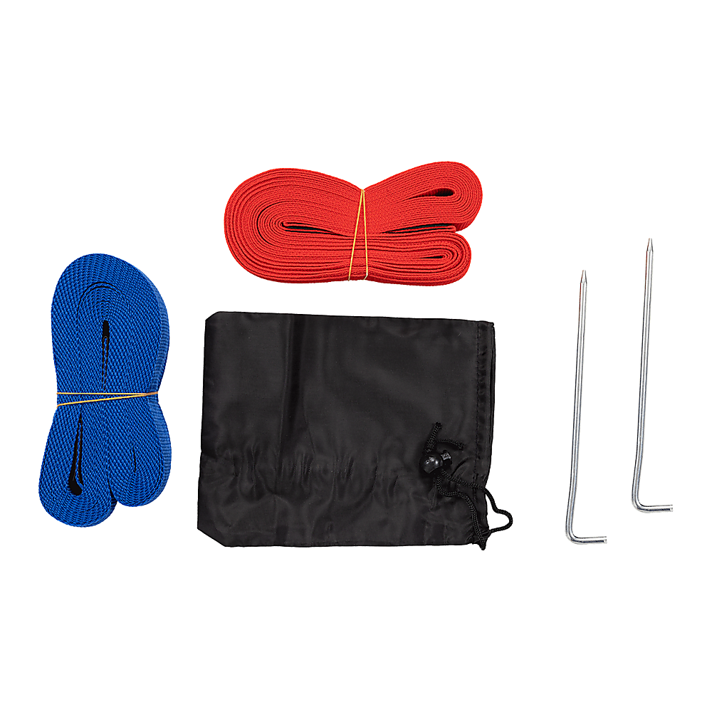 Anchoring Included Plastic plates for sand and metal stakes for grass setups