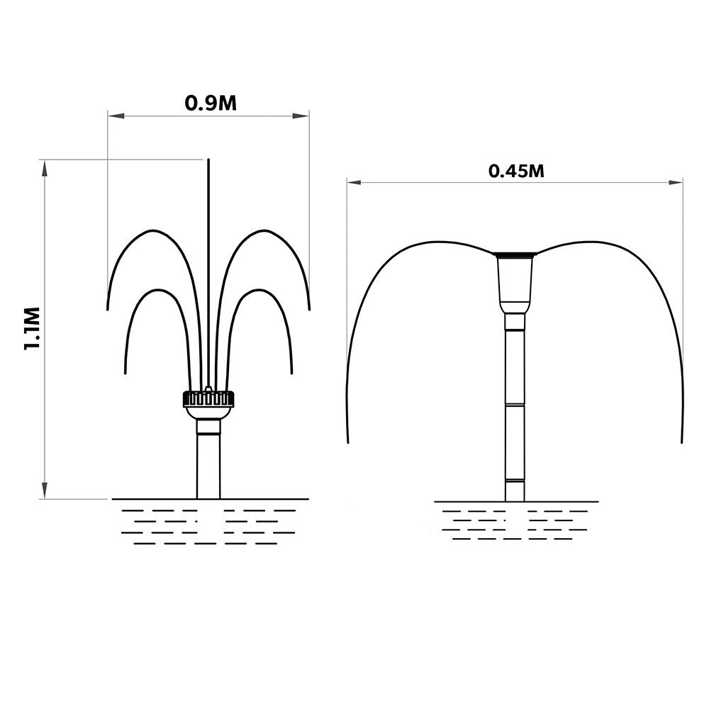 Protege are leaders in pump technology and the advanced 5W/10W/20W DC brushless design ensures efficient and reliable operation. The shaft height can be adjusted to best suit the depth of your pond. Two premium spray pattern nozzles are included and 60cm/ 1.5m/1.7m in delivery height can be achieved in full sunlight.
