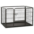 Our versatile playpen is ideal for your puppies to play, exercise, train, or simply for keeping them safe. It will be the perfect play paradise for your furry friends! This dog playpen can be easily set up or taken down. It features a hinged door with a security latch for easy access. This durable and weather-resistant playpen is made of rustproof powder-coated steel, making it suitable for outdoor and indoor use. A plastic bottom tray is also included in the delivery.