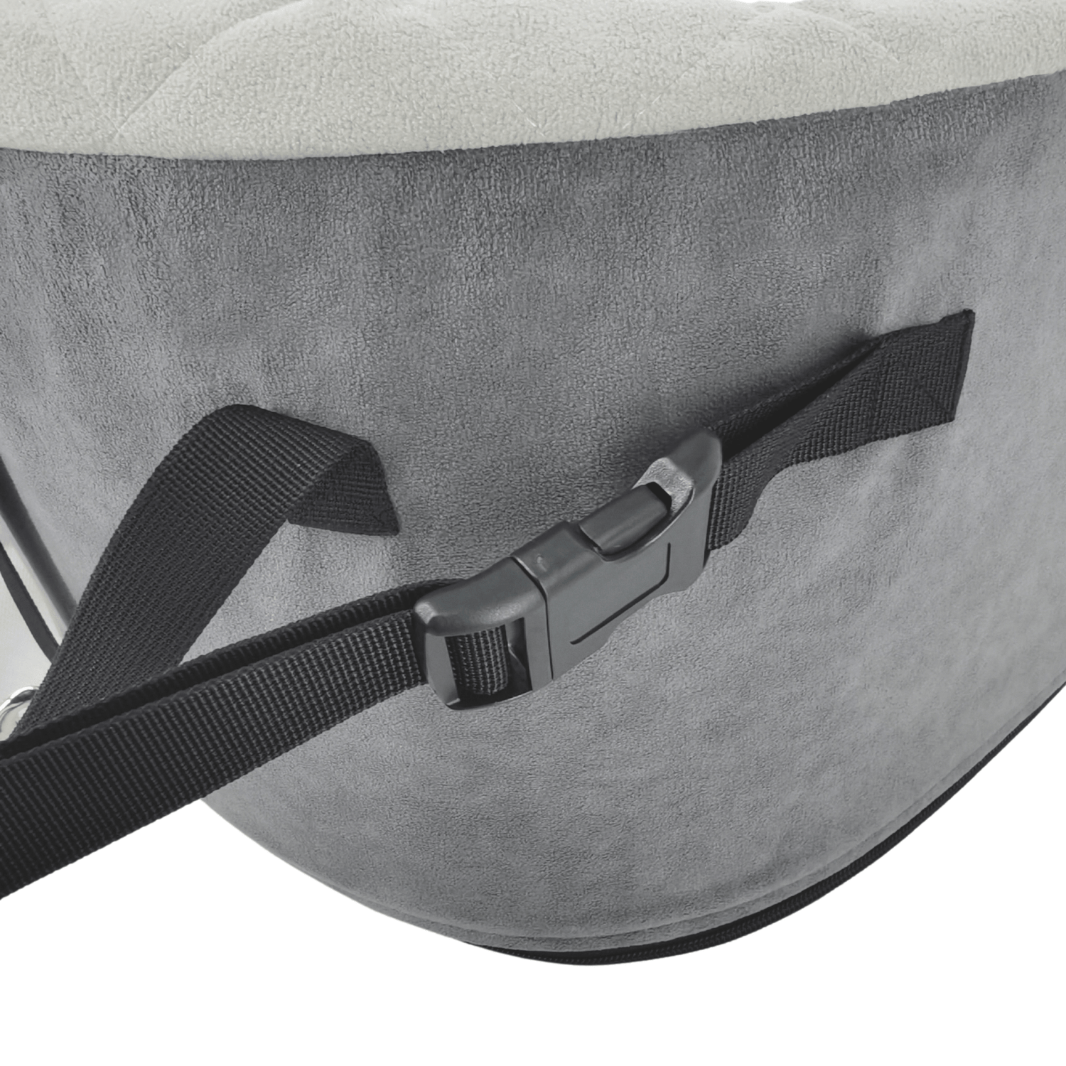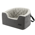 Grey in colour and made from polyester, this canine booster seat is a staple for any small dog owner. Padded with thick foam, it comes with a removable cover and non-slip bottom. It also boasts two sets of tethers. The first hooks into your pup's collar to keep them from jumping out while the vehicle's in motion.