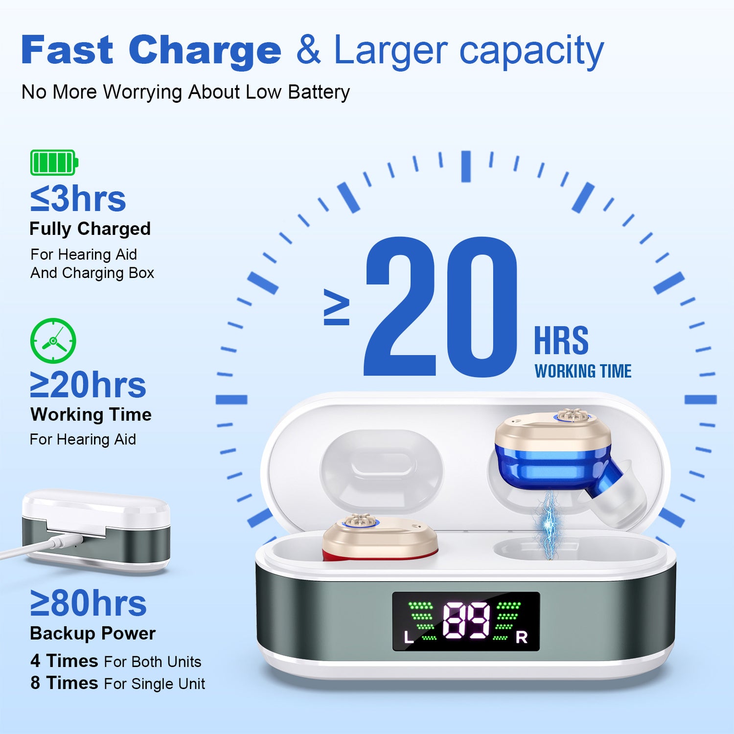 - Fast Convenient Charging: Fully charges in ≤3 hours; charging case offers up to 80 hours of backup power.