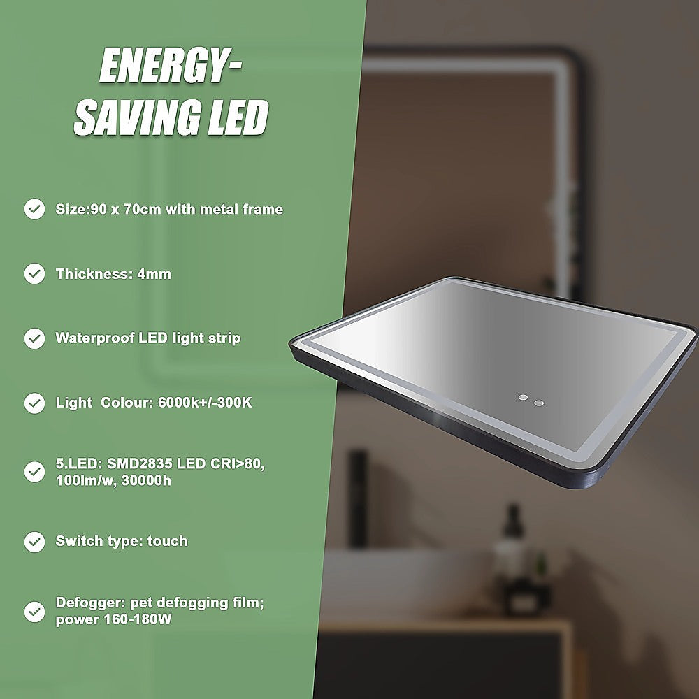 Experience energy efficiency with its LED lights, effectively brightening up the entire bathroom space even in the darkest corners. Choose from three distinct light settings - warm, natural white, and bright white - to match your specific needs and preferences.