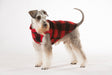 These soft micro fleece dog pyjamas in red check are the best dog clothes to keep your pooch snugly and warm.