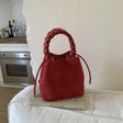Red Retro Maillard Brown Mini Bag - 2025 New Casual Versatile Women's Crossbody & Exquisite Braided Handle Bucket Bag (15x12x14 cm)