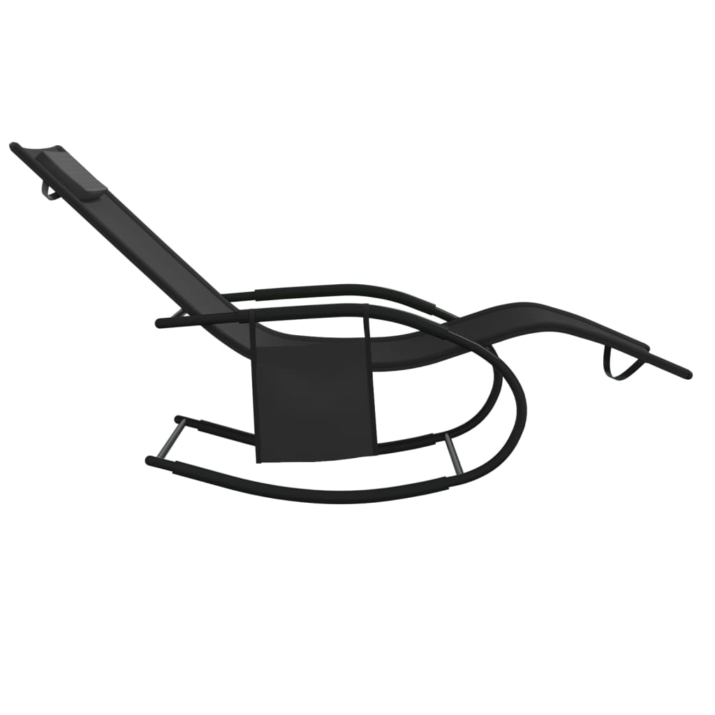 Take a breather from the hectic daily life on these handy rocking sun loungers! These rocking chairs are an excellent leisure and holiday companion for you and your family to relax and enjoy. Rocking leg: Relax by sitting comfortably while enjoying a calming, gentle rocking motion.Strong frame: The swing lounger is made of powder-coated steel, which makes it rust-resistant and sturdy.Ergonomical design: Featuring an ergonomically shaped lying surface and a removable headrest, the rocking lounger offers utmost comfort when you swing back and forth.Quality fabric: The mesh textilene surface is breathable, ensuring good air circulation and prevents sweat build-up. It is also easy to clean with a damp cloth.Removable side pocket: With a convenient removable side pocket, you can keep mobile phones, magazines and other small items within easy reach. Note:In order to extend the life of your outdoor furniture, we recommend you to clean it regularly and do not leave it outdoors without protection unnecessarily.Clean: Use a mild soap solution.Storing: If possible, store in a cool, dry place indoors. If the product is stored outdoors, protect it with a waterproof cover. Wipe and dry the excess water or snow from flat surfaces after a rain or snowfall. Allow sufficient air circulation to avoid moisture-related damage.